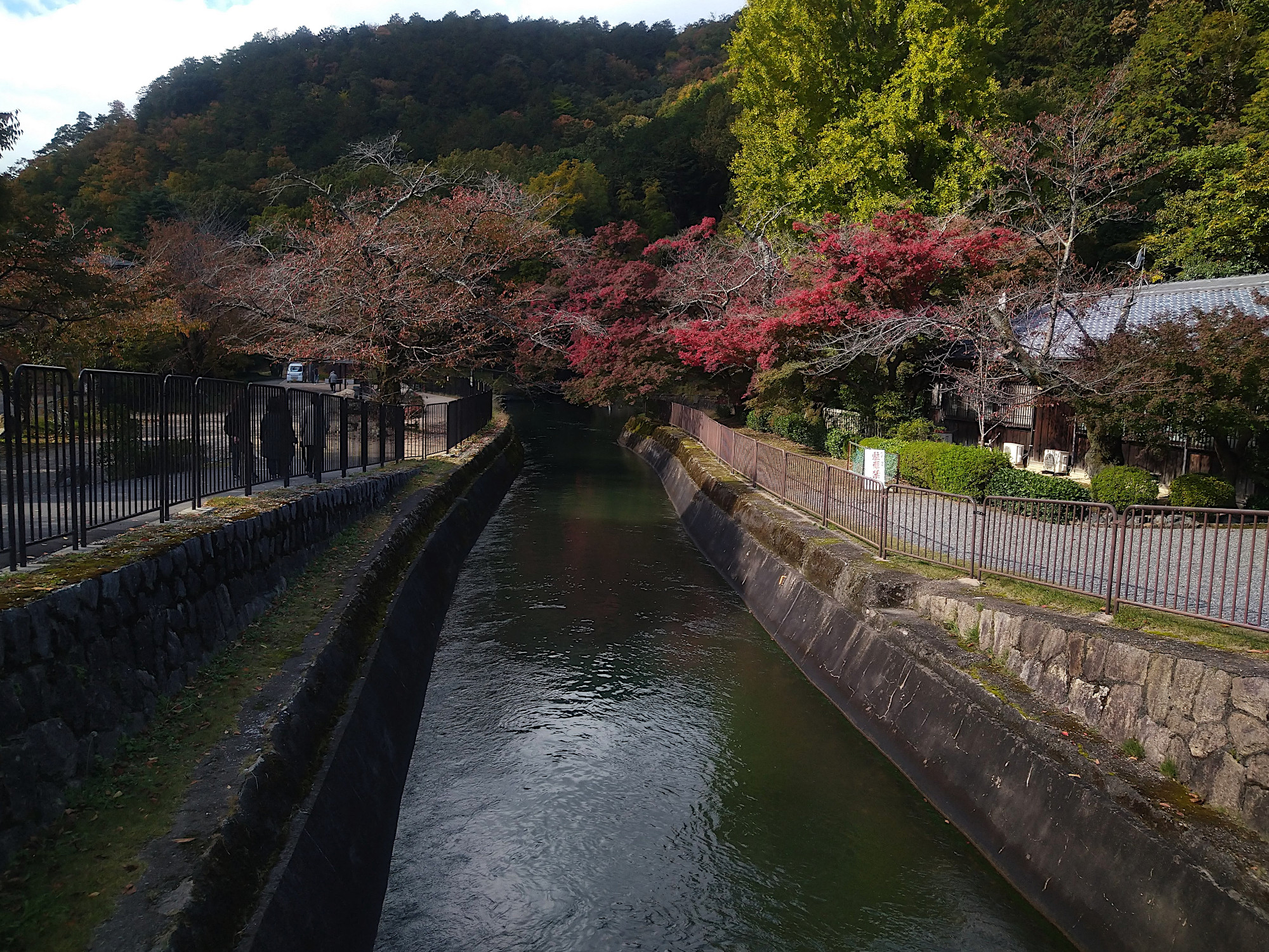 美しい紅葉の路を走り、四宮船溜に至ります。疎水には計5ヵ所に船溜が設けられていたそうですが、ここで荷物の積み下ろしをしたり、船頭が休憩したりしたそうです。